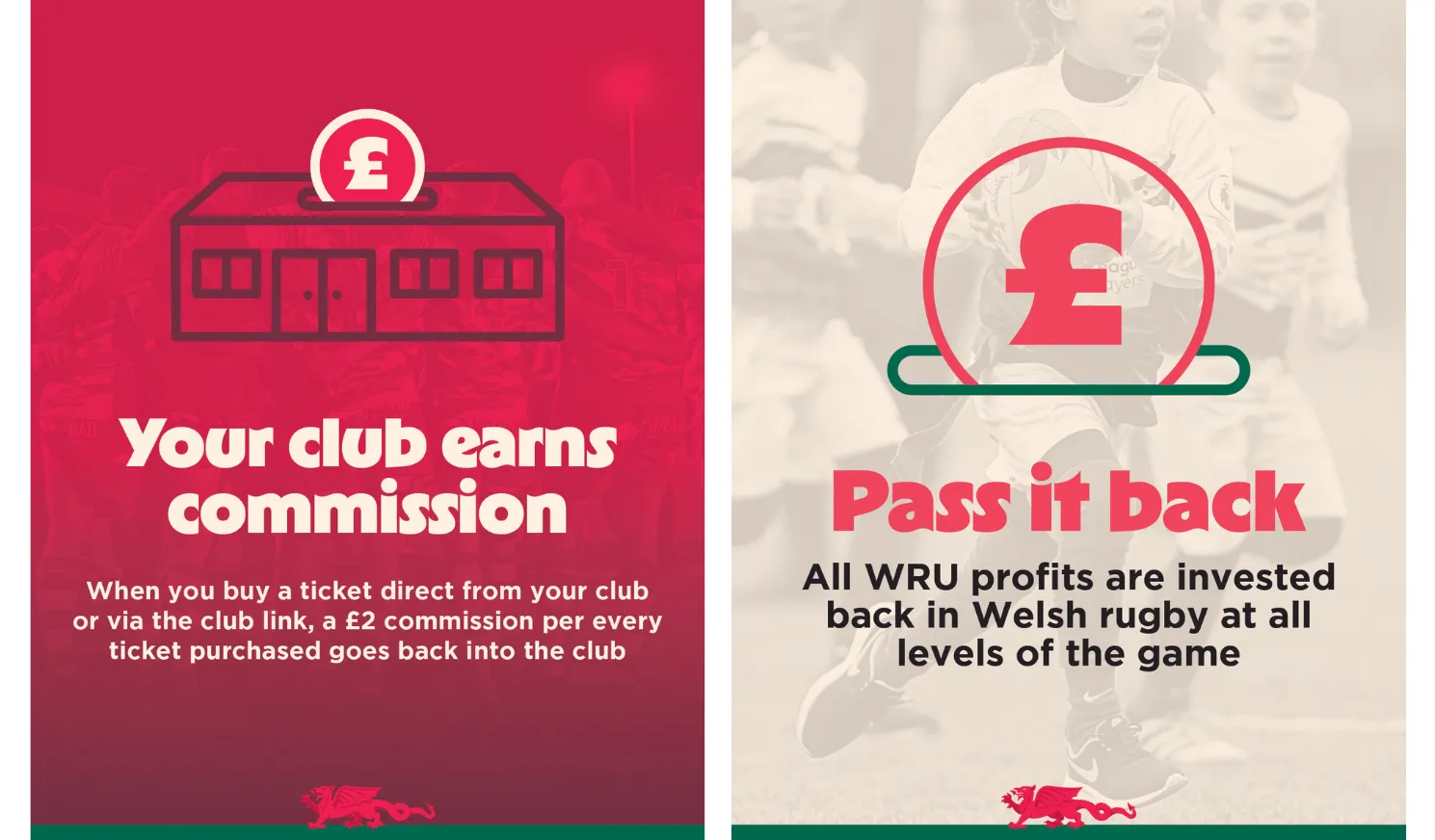 Rydyn ni’n gwahodd pob cefnogwr i roi rhywbeth yn ôl i’r gêm ar lawr gwlad wrth sicrhau eu seddi ar gyfer Pencampwriaeth gyntaf y Cenhedloedd yn Stadiwm Principality ym mis Tachwedd eleni. Yr hydref hwn, mae cefnogi dynion Cymru hefyd yn golygu cefnogi’r gêm ar lawr gwlad. Mae cyfraniad o £2 o bob tocyn a brynir trwy glwb rygbi lleol yn mynd yn ôl yn uniongyrchol i’r clwb hwnnw. Mae hyn yn cynrychioli buddsoddiad uniongyrchol i rygbi Cymru o’r gwaelod i fyny, gan sicrhau bod y gefnogaeth ariannol a gynhyrchir gan ein tîm cenedlaethol yn mynd yn ôl i’r meysydd, y clybiau, a’r bobl sy’n cadw rygbi Cymru yn fyw.